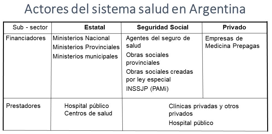 Por otro lado, nos encontramos con el sector de prestaciones. Ya sea el privado con clínicas, sanatorios, centros de diagnostico o consultorios privados como públicos con los hospitales y centros de salud, nacionales, provinciales y municipales.